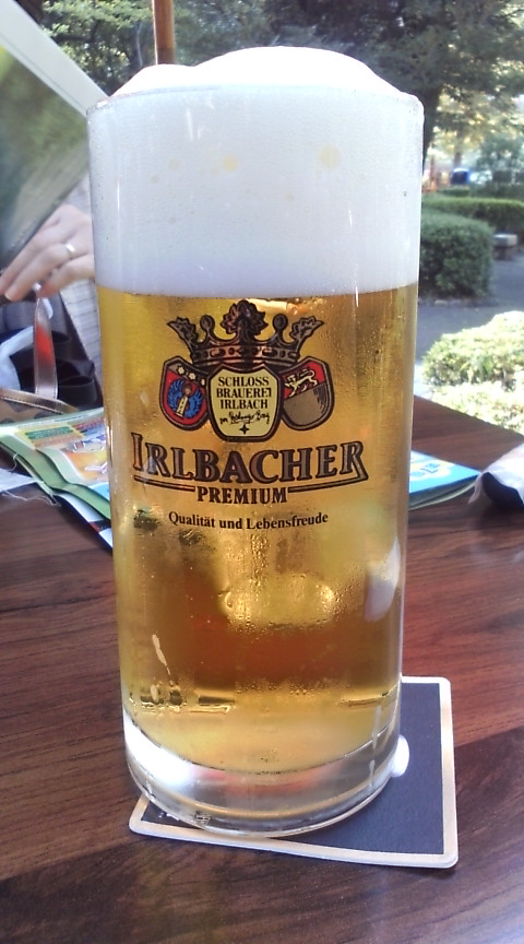 日比谷公園に来た訳は実はおいしいビールを飲むため。ここの日比谷茶廊ではおいしいドイツビールも飲めます。「エルティンガー」を独特の高いグラスで一杯いただきました。携帯していった漱石全集第三巻の中から、倫敦塔を読みながら至福の時間を味わいました。